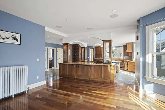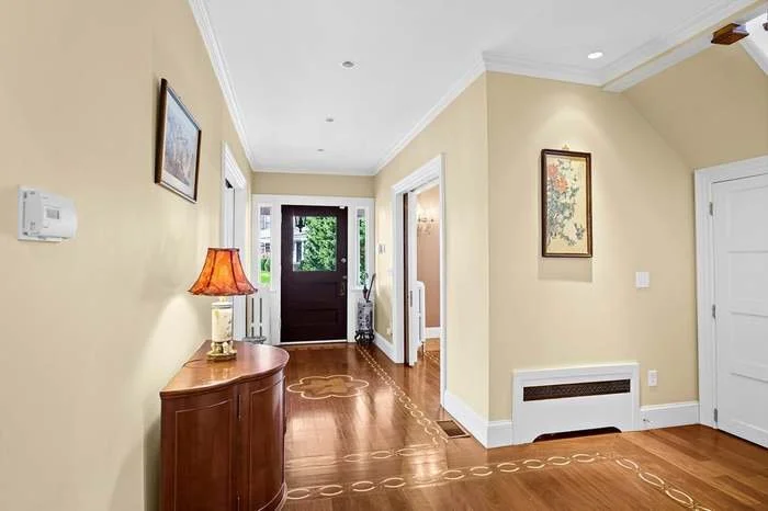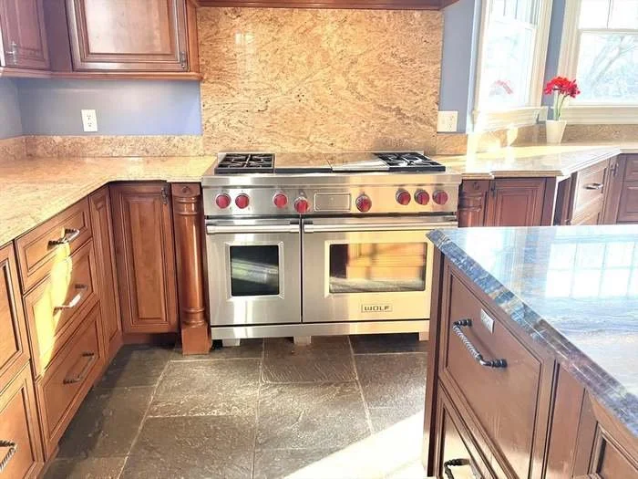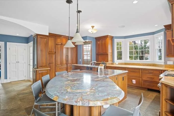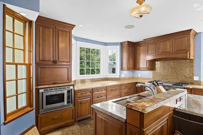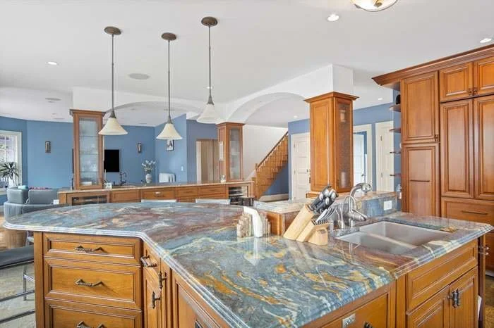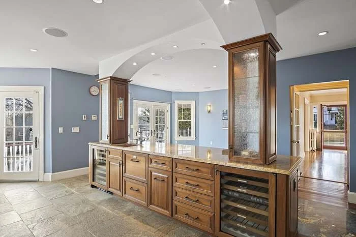 This home features a reimagined floor plan with a gourmet kitchen, including a LaCornue five-burner stove, a 9-foot Calacatta marble island, and an adjacent family room with a fireplace. It offers five spacious bedrooms, 4.5 baths, and a luxurious primary suite with a marble turret shower. The finished lower level includes a custom wine cellar with yard access, while hand-crafted specialty finishes throughout set this home apart.